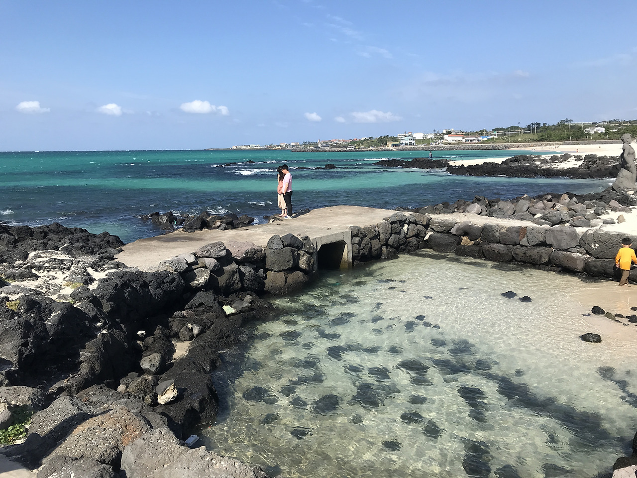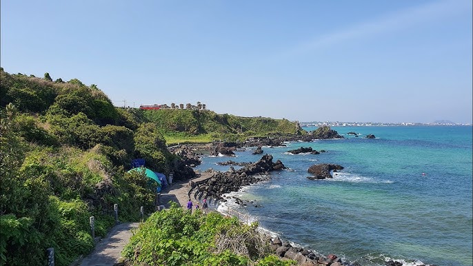 애월읍에 위치한 한담해변 산책로는 바다를 바로 옆에 두고 걸을 수 있는 아름다운 산책 코스입니다. 푸른 바다와 검은 현무암이 어우러진 풍경은 사진 찍기에도 좋고, 산책하며 힐링하기에 안성맞춤입니다.